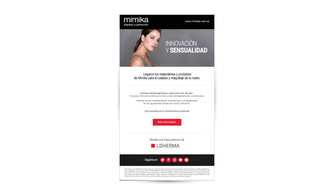 Realizamos el diseño del sitio web, las redes sociales y la campaña de mailing para Mímika, una marca de cosméticos premium de Lidherma.